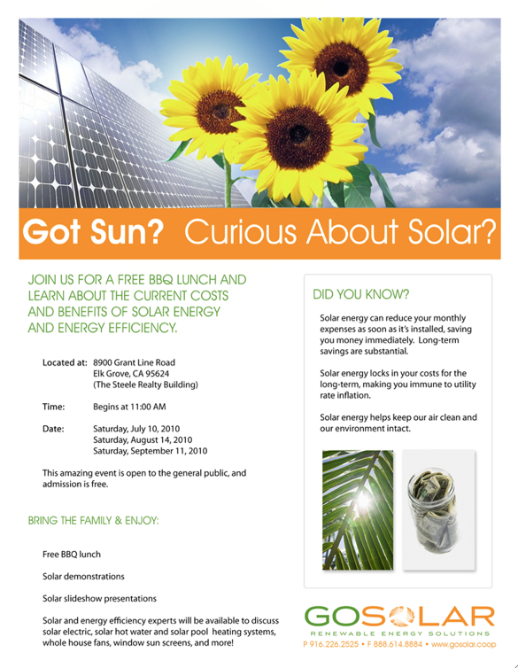Solar Energy Demonstration Days - next event is Saturday Sept. 11, 2010